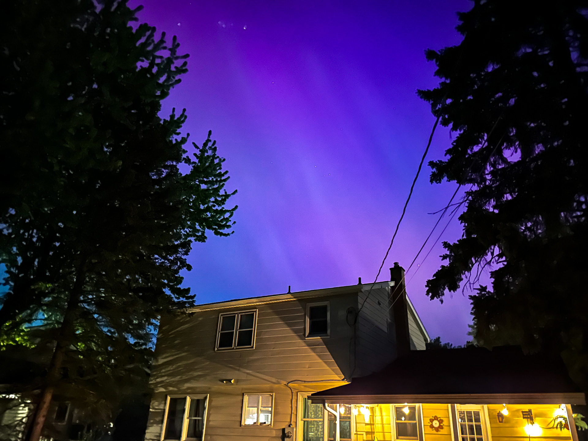 What an incredible show last night from our neighborhood in West Seneca! It's been a very long time since there's been a KP9 G5 storm, we are very lucky the clouds cleared up! We were hanging out in our neighbor's backyard around the fire when I noticed them starting to dance around. Tough to see a lot of the colors with the naked eye due to all of the light pollution, but I definitely saw green and hues of red.