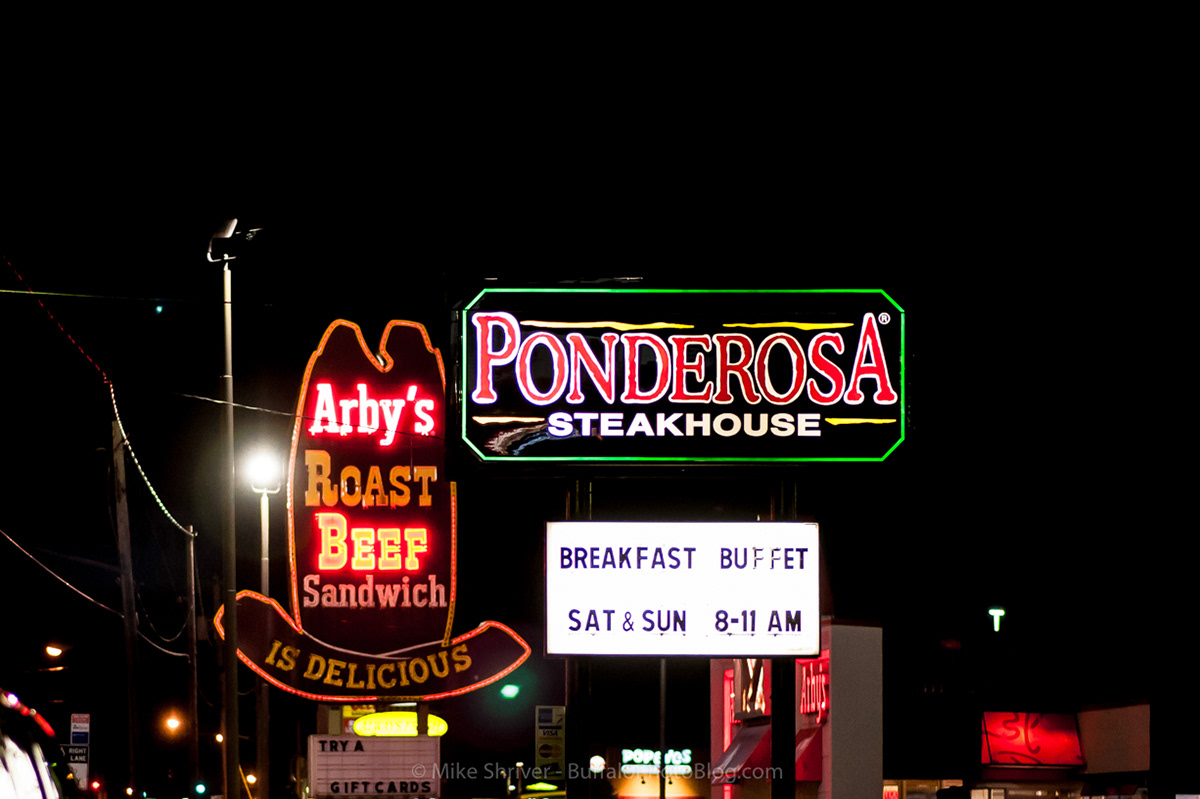Once upon a time, Niagara Falls was responsible for a significant amount of the country's tourism business. The first hotel in Niagara Falls, the Cataract House, opened it's doors in 1825. Soon after, other hotels followed as tourism traffic steadily increased. During the late 19th and 20th centuries, Niagara Falls became known as the "honeymoon capital of the world", further driving the need for affordable yet boutique motels to cater to the newlyweds. By the 1930's, there were 47 motels listed in the city directory and by the 1950's that number more than doubled. Niagara Falls Boulevard was the main strip to get to the Falls, wether you arrived by car from the I-90 to I-290, or if you flew into Niagara Falls Airport. Today, decayed remnants of several circa 1950's neon signs remain along the once bustling, now largely run down boulevard. Here's a series of some of my favorites remaining.
